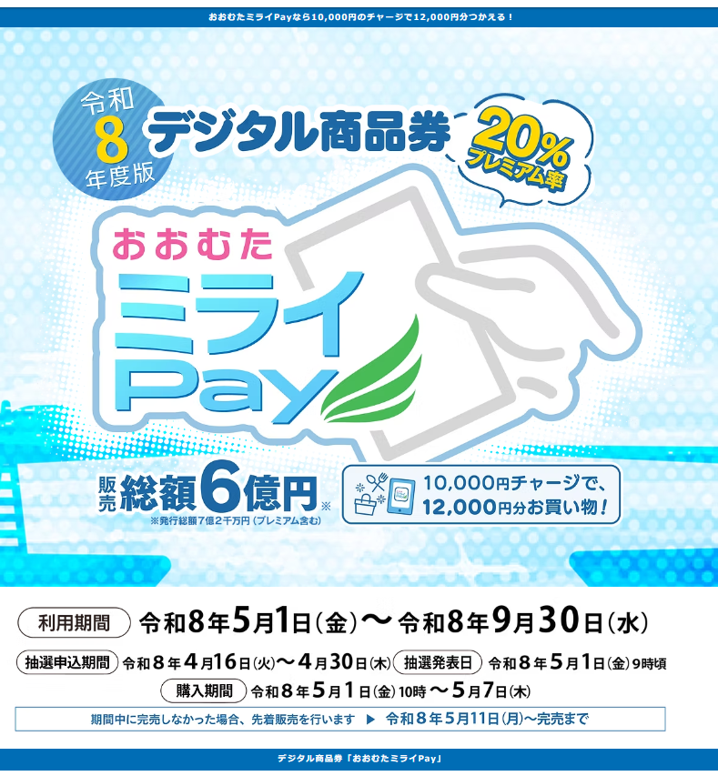 申込期間:令和8年4月16日~4月30日(「おおむたミライPay」専用アプリから申し込み)